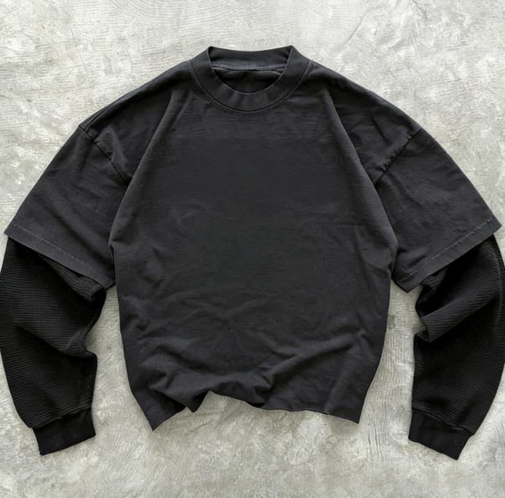 Discover premium wholesale custom logo men's double layer long sleeve t-shirts from a professional manufacturer. Crafted for comfort and durability, these versatile tops feature a unique dual-layer design. Ideal for brand promotion, we offer high-quality fabric and precise customization to elevate your apparel line for any season or demanding fashion markets.